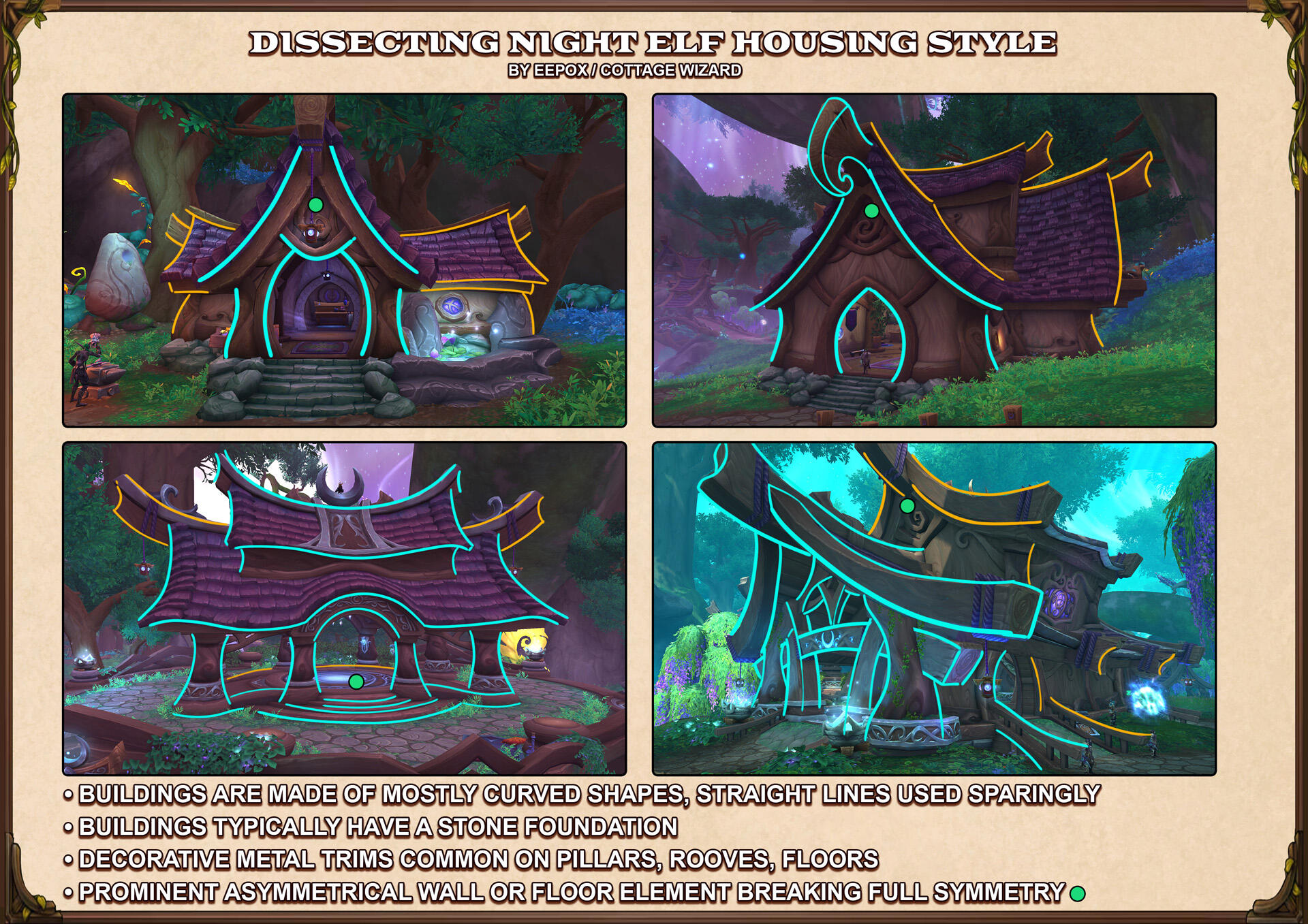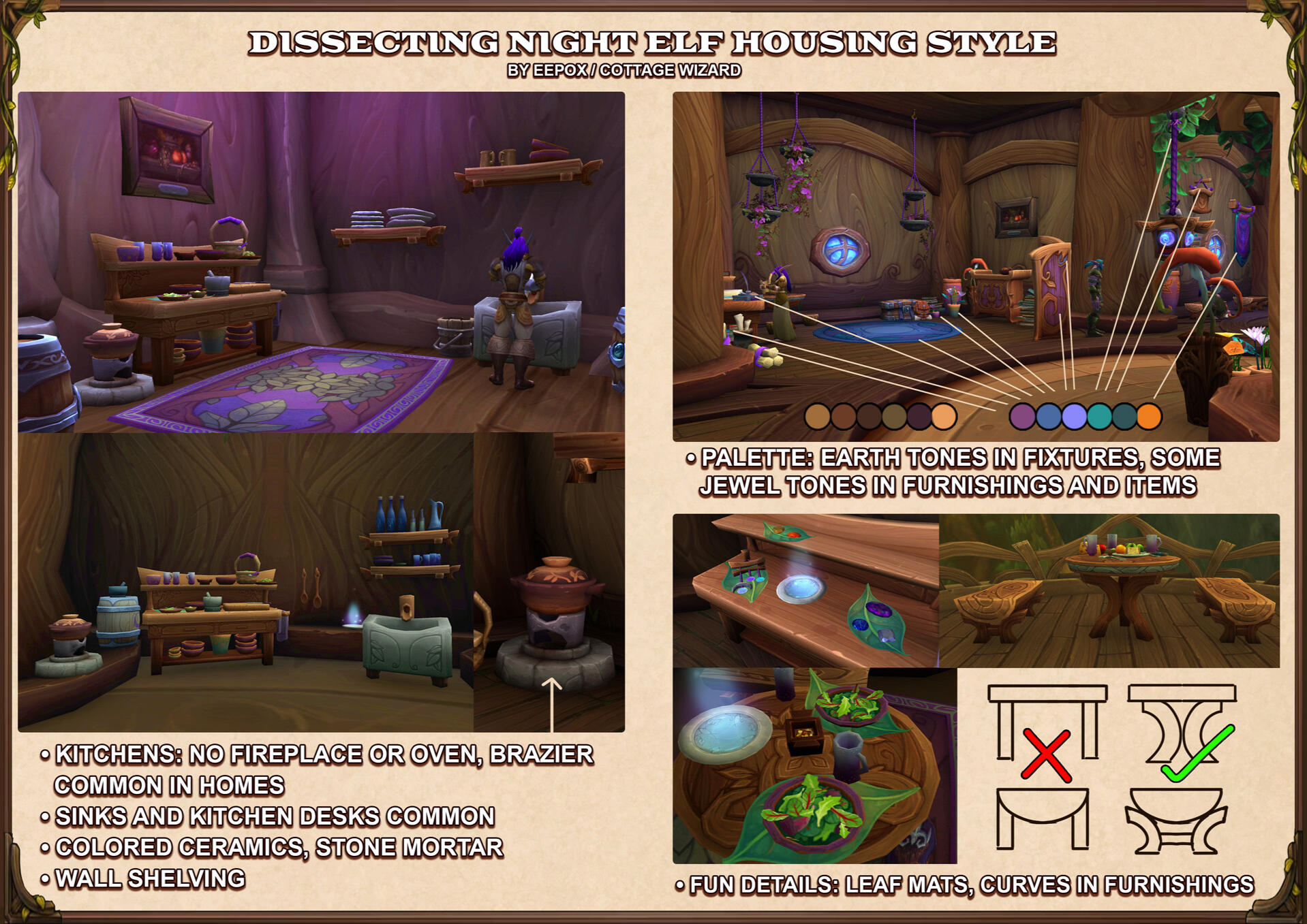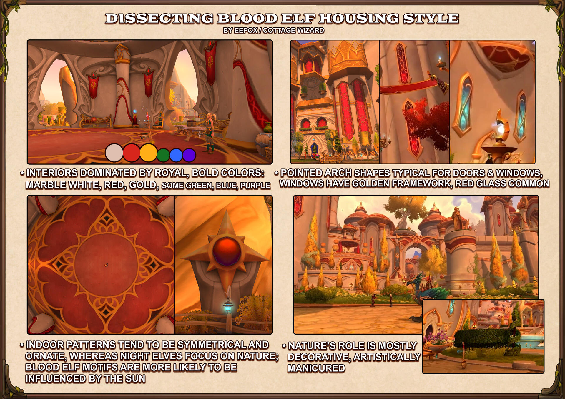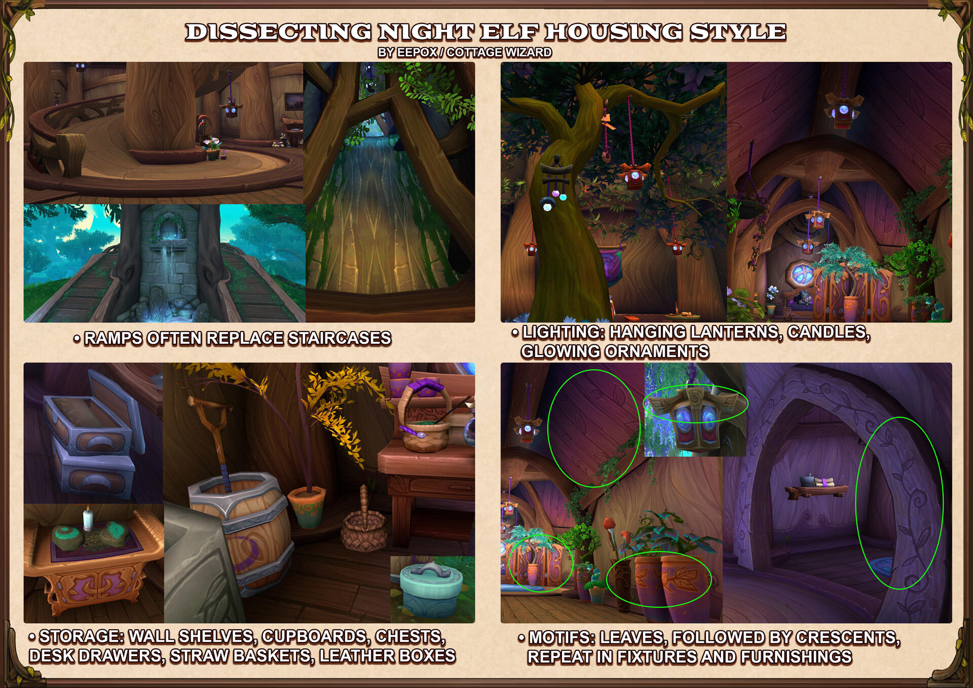 Sharing my notes on what I think sets the housing styles of Warcraft player races apart from each other. These are just a fan's observations, not rules, meant to spark ideas, help people with their racial housing builds by analyzing aesthetics, and give some keywords for searching further inspiration!