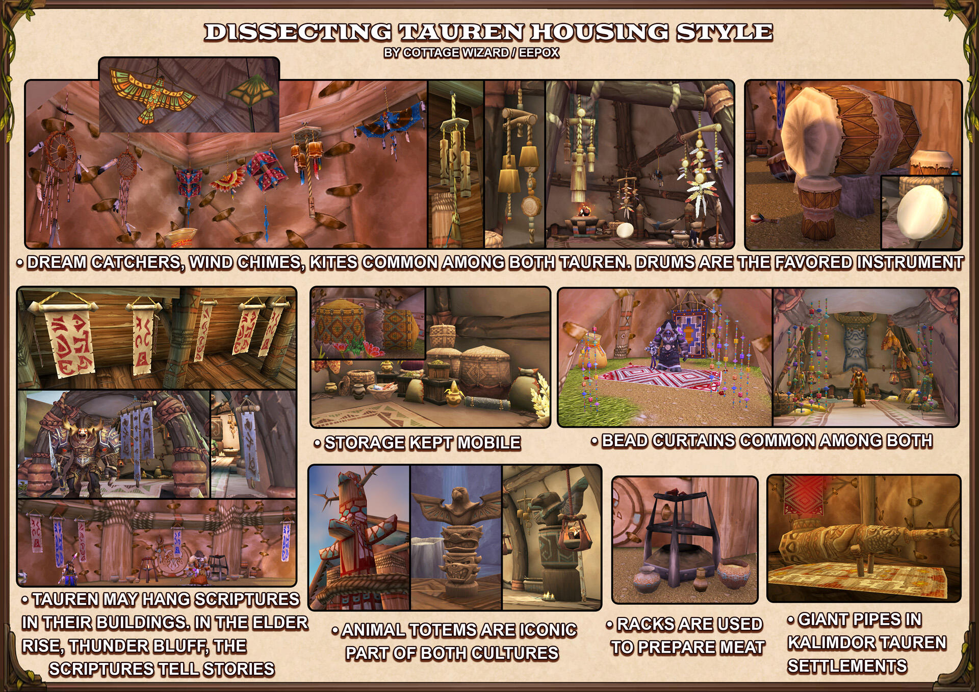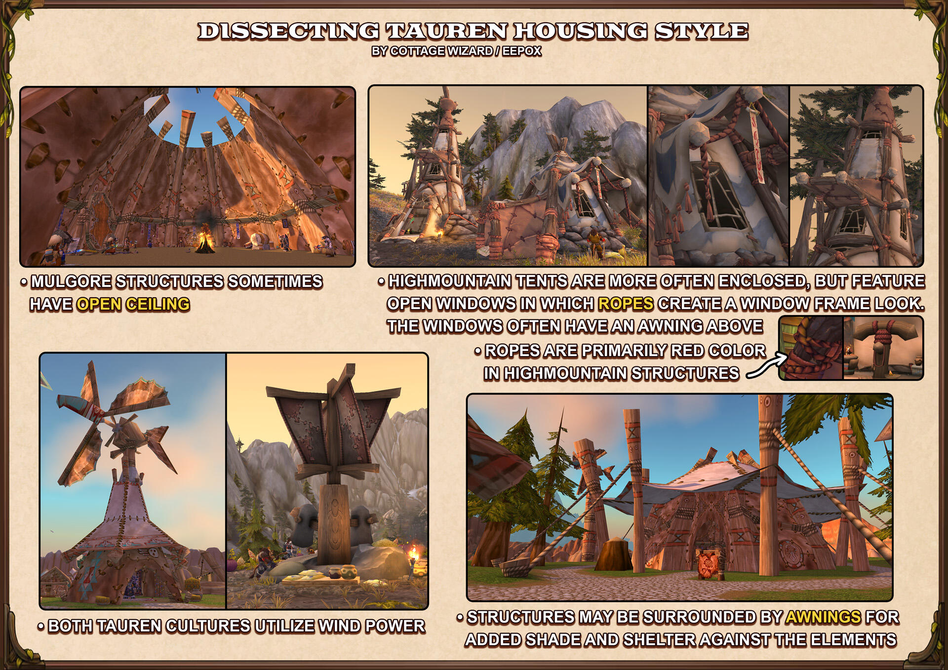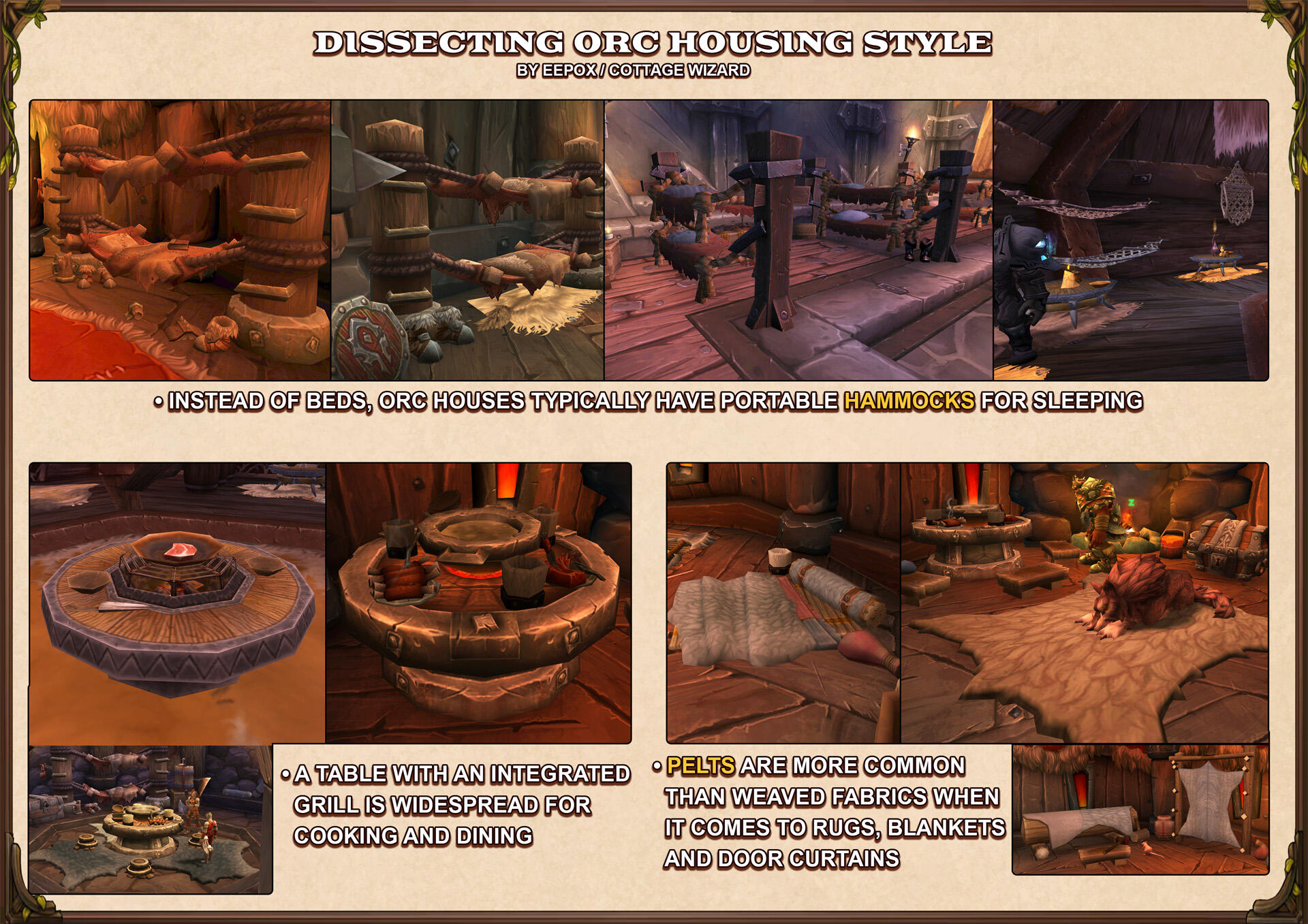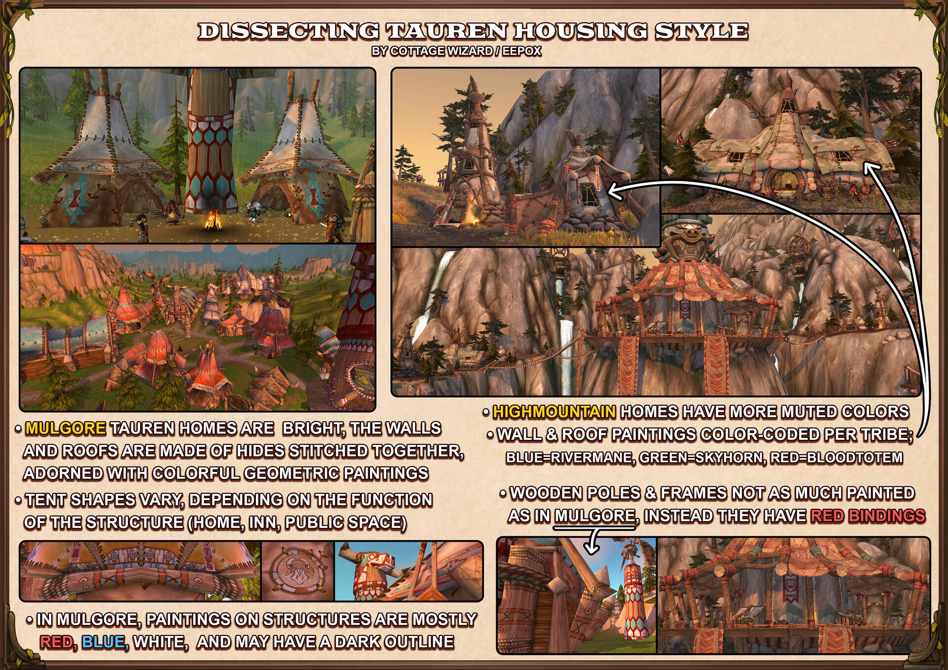 Sharing my notes on what I think sets the housing styles of Warcraft player races apart from each other. These are just a fan's observations, not rules, meant to spark ideas, help people with their racial housing builds by analyzing aesthetics, and give some keywords for searching further inspiration!